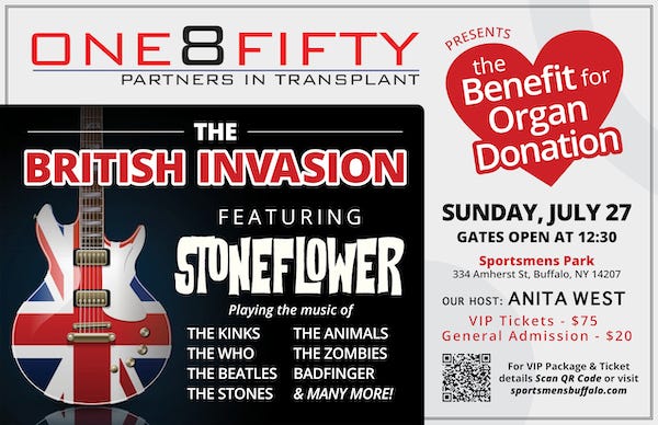 Sunday, July 27, 12:30 - 5 pm at Sportsmens Park, Buffalo. $20/$75 VIP