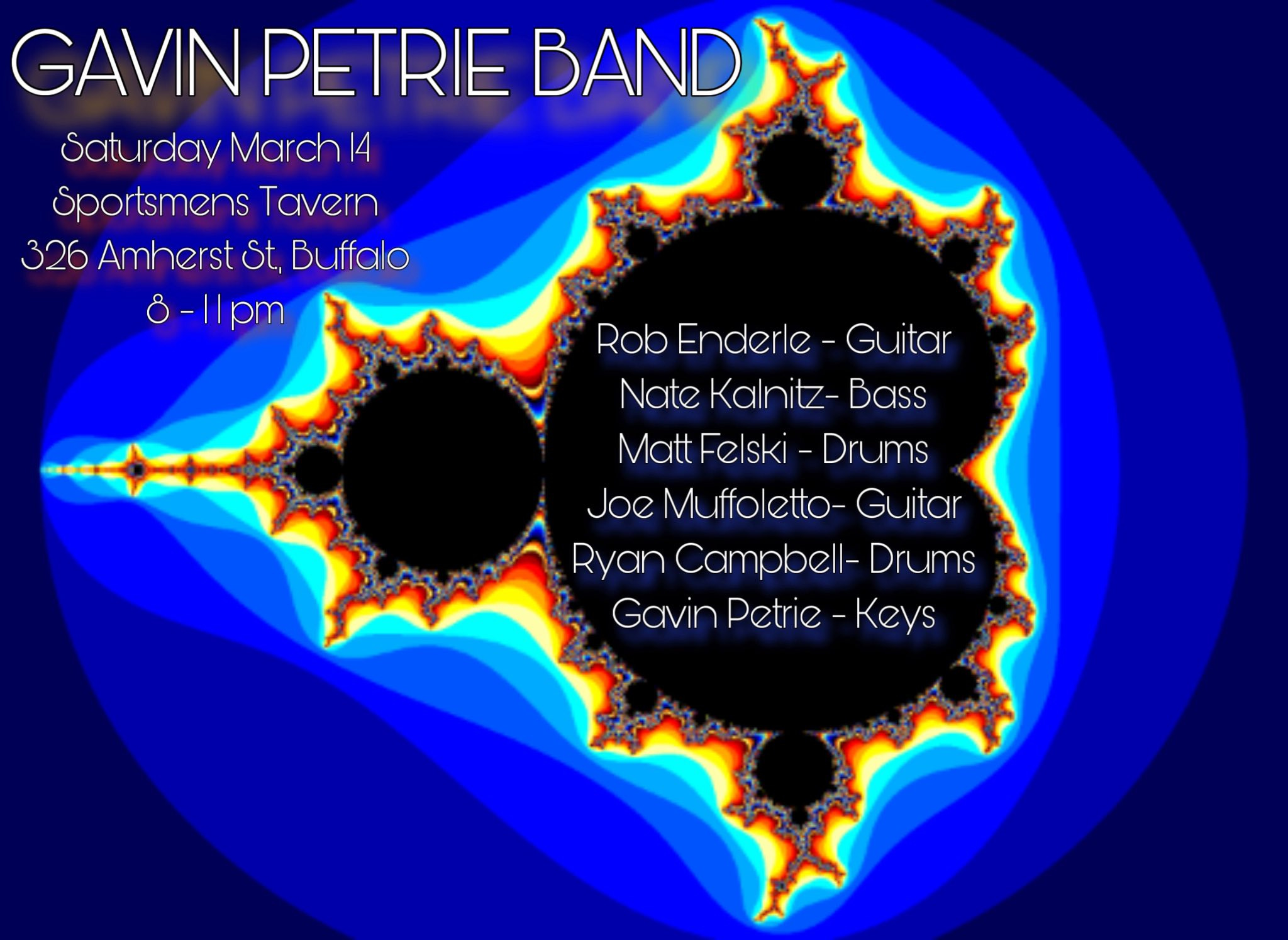 Saturday, March 14, 8 pm at Sportsmens Tavern, Buffalo NY. $