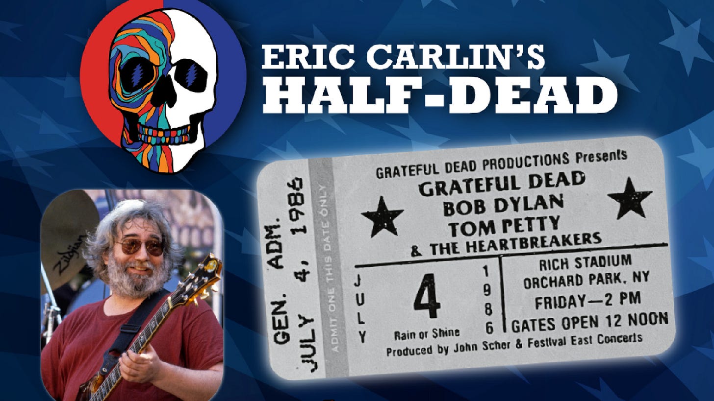 Eric Carlin’s Half-Dead preforms in celebration of the 40th anniversary of Bob Dylan, Tom Petty, and the Grateful Dead concert at Rich Stadium.