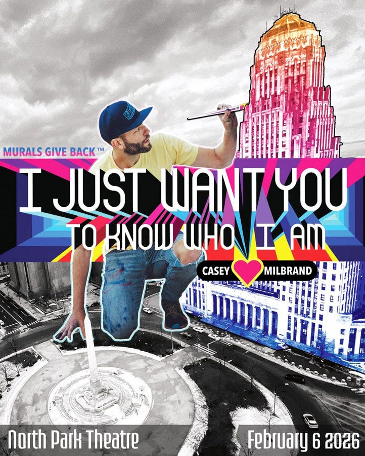 Filmed and edited by Scott Balzer, the film reflects on the importance of public art across Buffalo and celebrates the unyielding community support that made it all happen. Casey dreams of filling the theater — bringing the community together to continue what began 10 years ago with the Greetings From Buffalo mural. More than a night of conversation and film, this gathering offers a vibrant atmosphere with opportunities to meet the artist and win prizes.